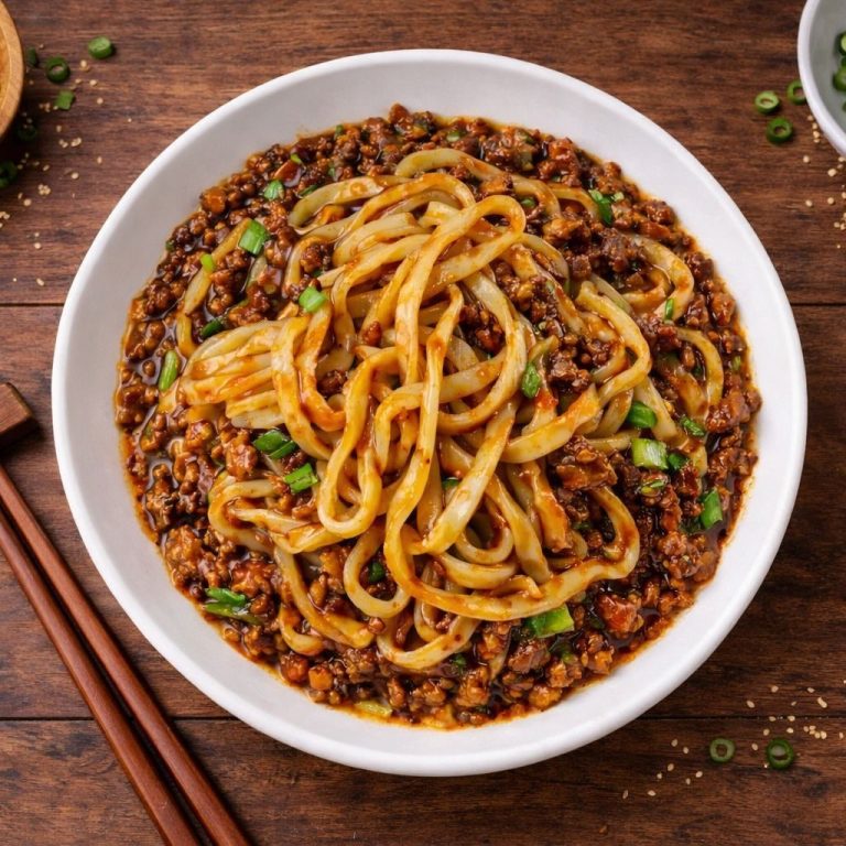 Die Wenzhou-Nudeln werden mit Bio-Rindfleisch, Spinat, Shiitake und Zwiebeln in einer speziellen Teriyaki-Sauce serviert.
